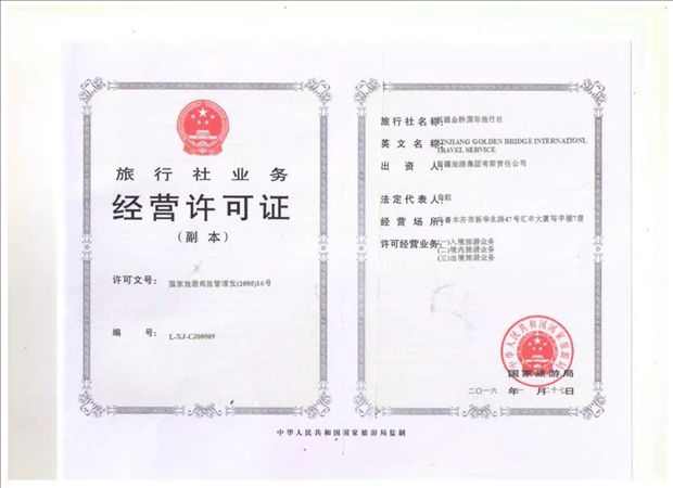新疆当地旅游运营资质:新疆金桥国际旅游:旅游许可L-XJ-CJ00009,专注新疆当地线旅游服务